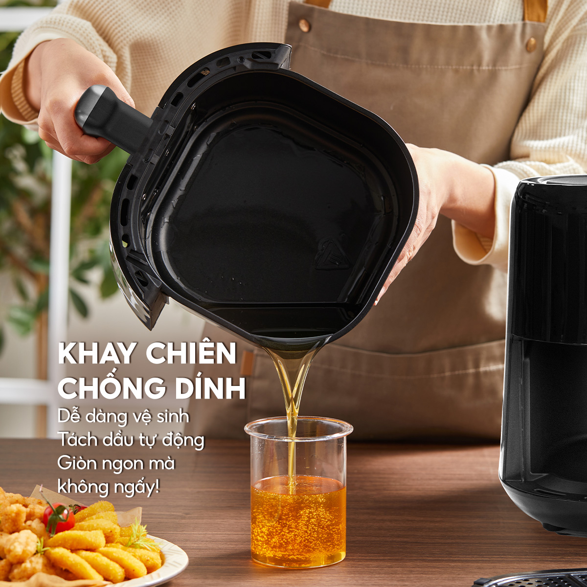 - Hơn nữa, nồi chiên không dầu nấu ăn hạn chế dầu mỡ, cho món ăn trọn vị với lớp vỏ ngoài giòn rụm và giữ phần thịt bên trong mềm ngọt, tốt cho sức khỏe của gia đình.