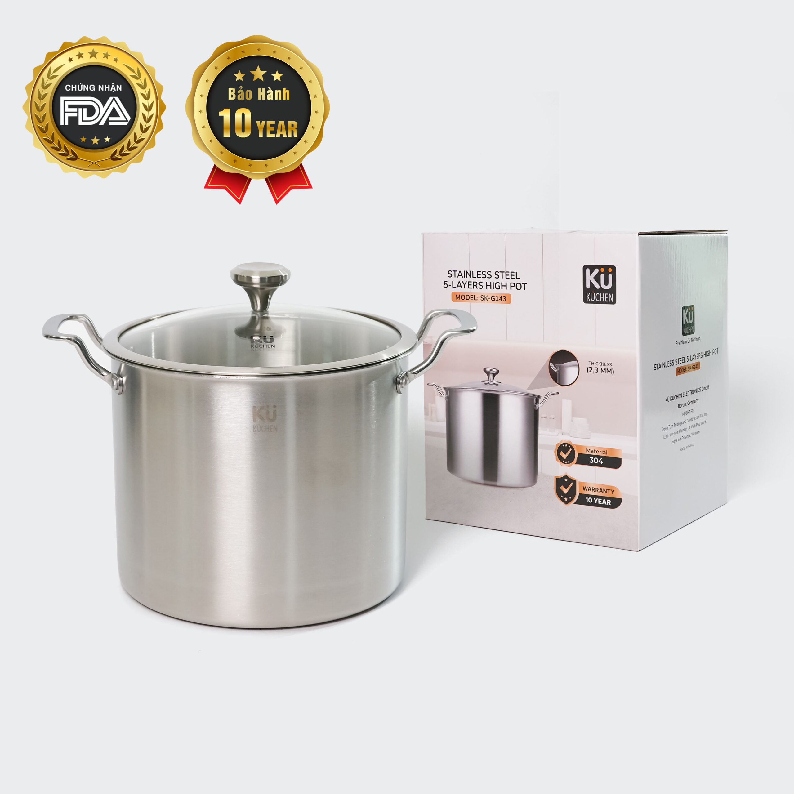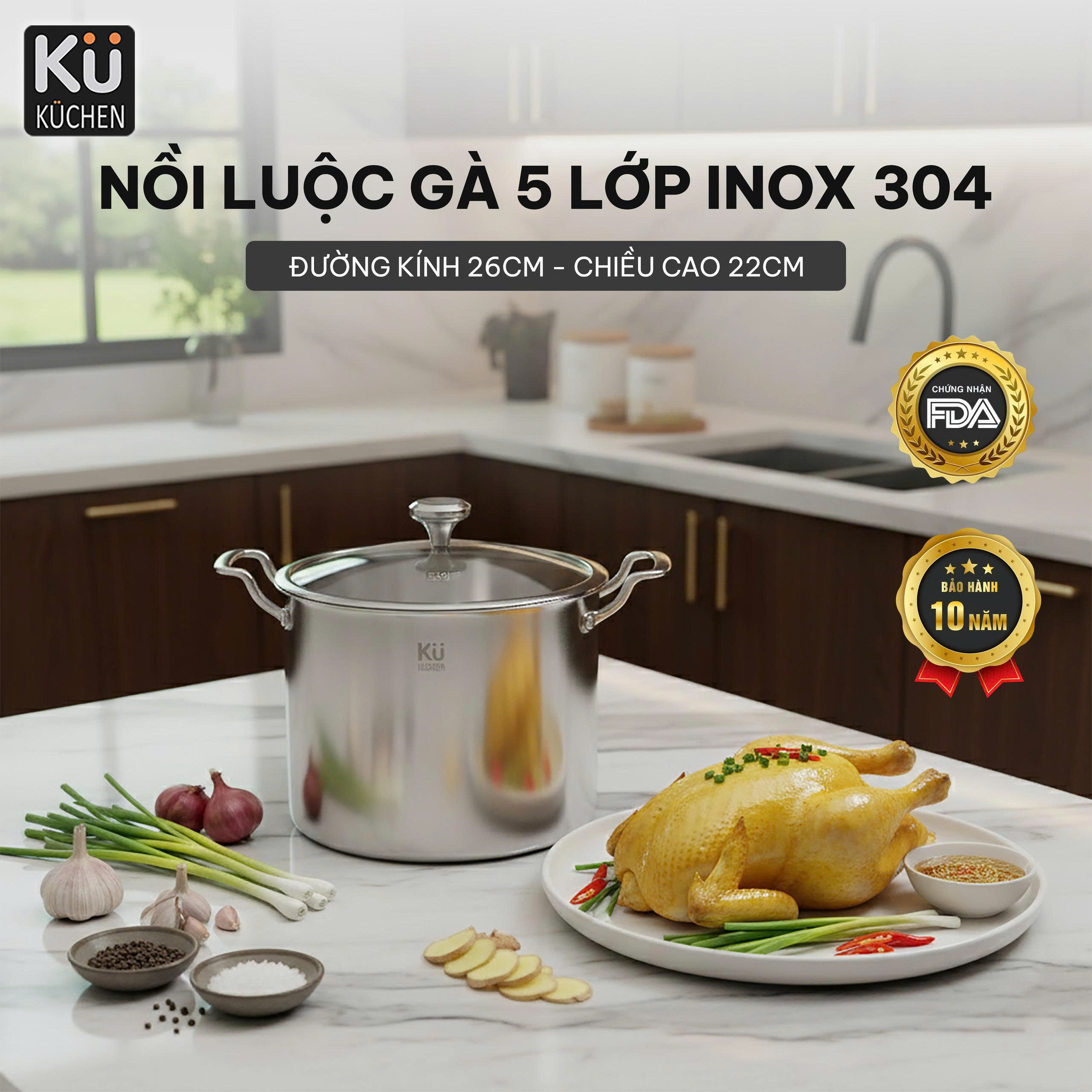 - NỒI LUỘC GÀ 26CM KUCHEN – INOX 5 LỚP CAO CẤPModel SK-G143 – Chuẩn inox 304 – Dày 2.