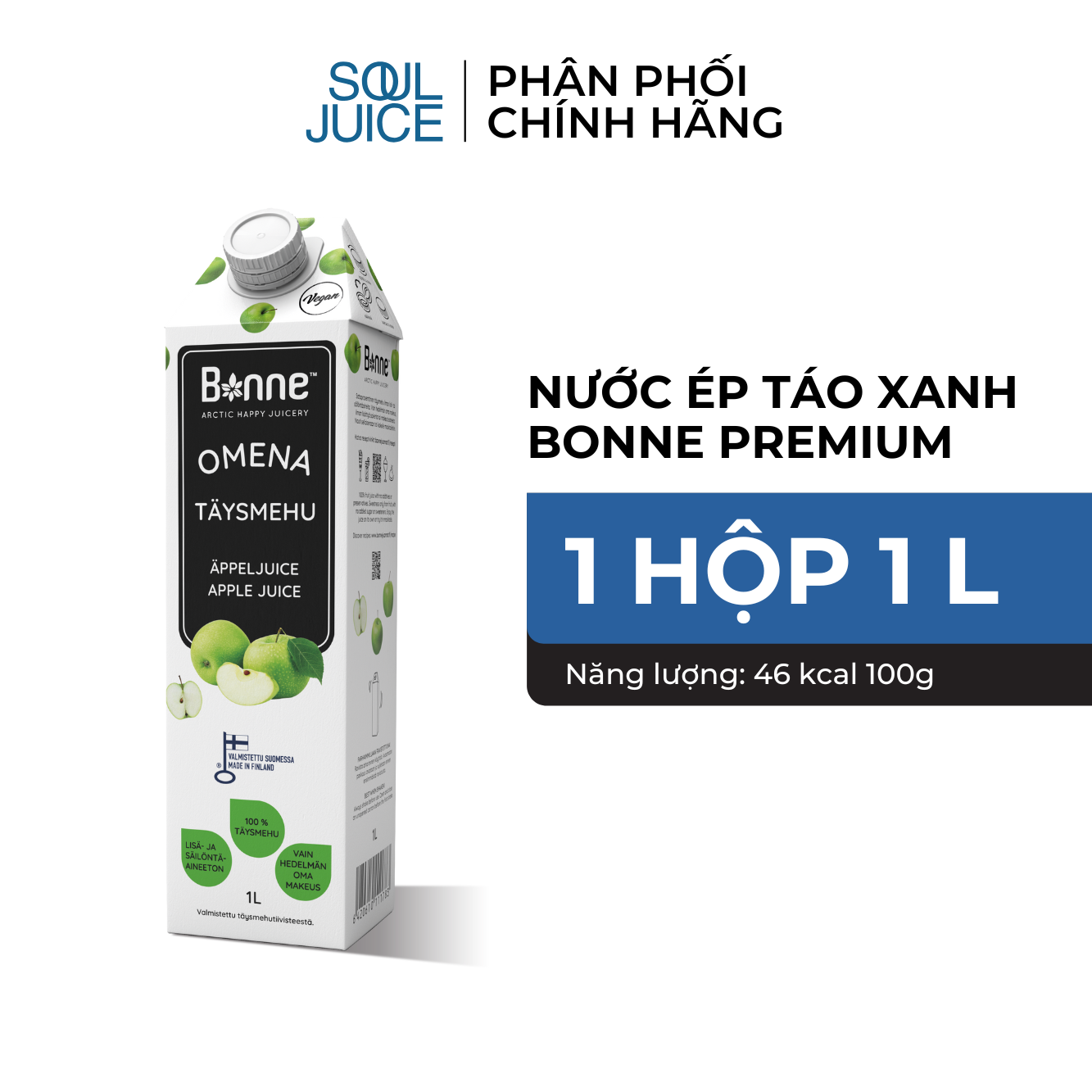 Nước ép cao cấp Táo xanh Bonne được ép từ 100% táo xanh tươi, đóng hộp Tetrapak 1 lít tiện lợi, dễ bảo quản, giữ trọn hương vị tự nhiên thơm ngon và giá trị dinh dưỡng tuyệt vời của trái cây tươi. Là lựa chọn hoàn hảo giúp bạn dễ dàng thêm táo xanh vào chế độ ăn uống hàng ngày và tận hưởng những lợi ích mà loại trái cây này mang lại.