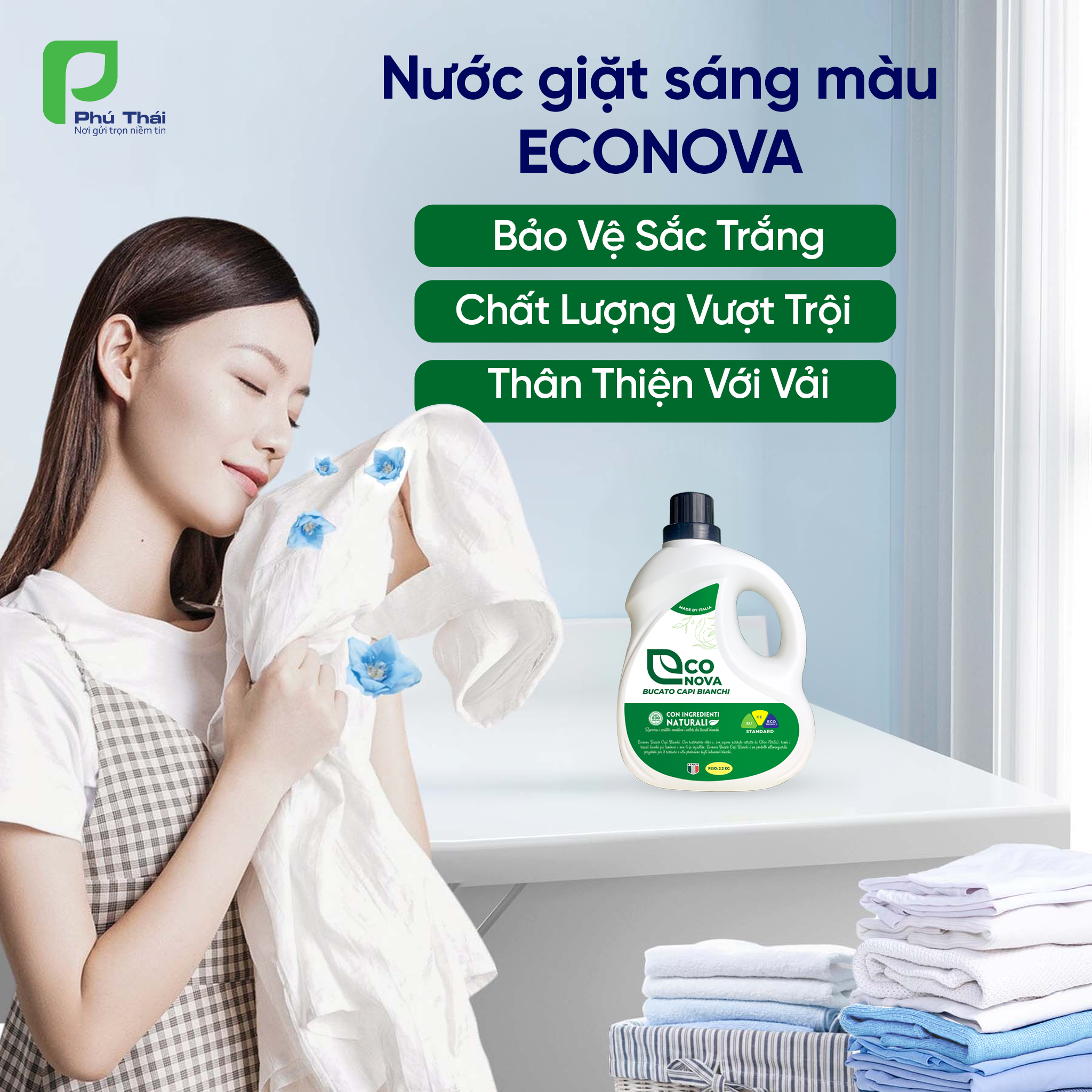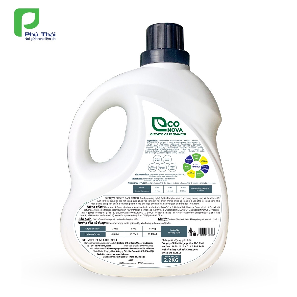 - Tên sản phẩm: Nước giặt dành cho đồ sáng màu - Econova Bucato Capi Bianchi2.