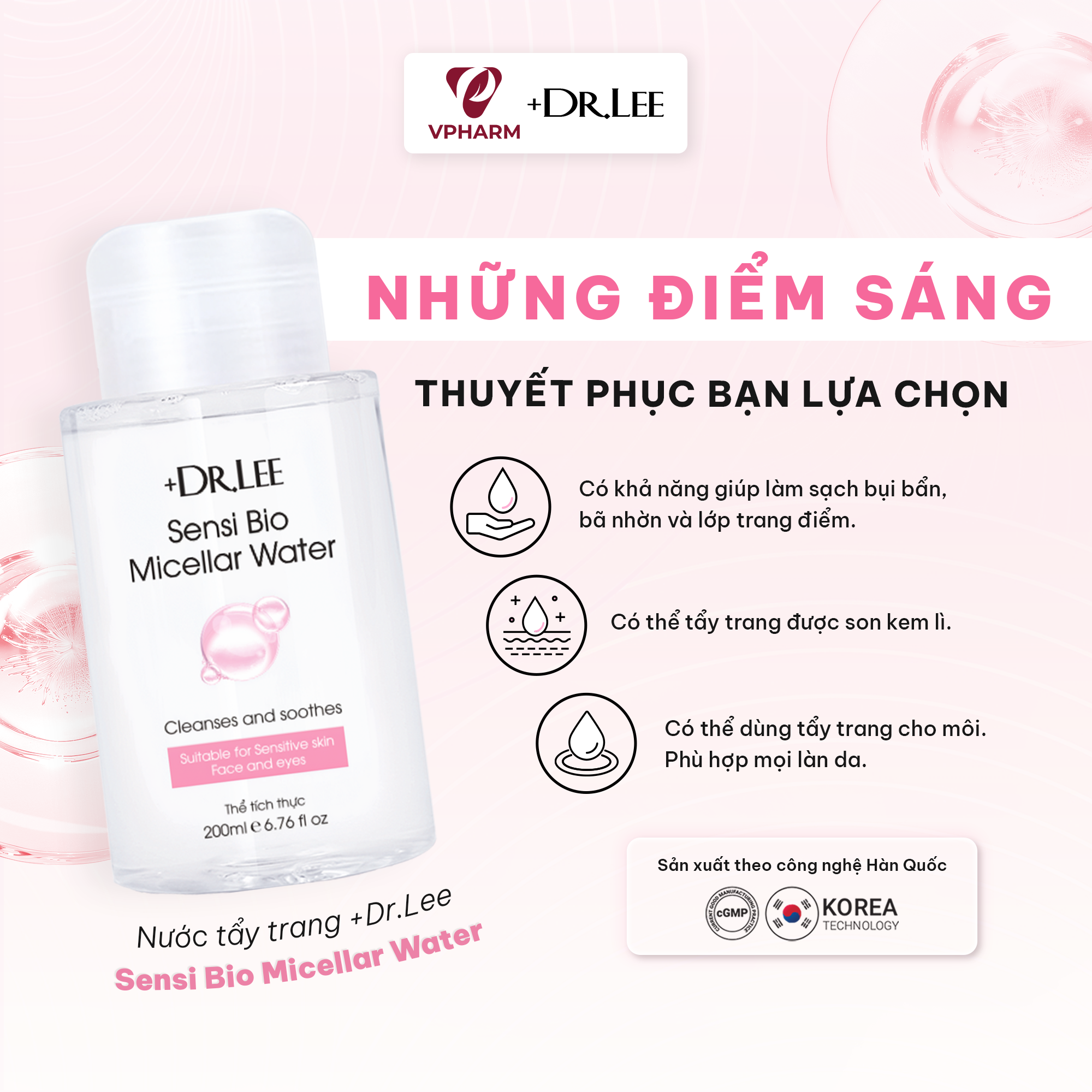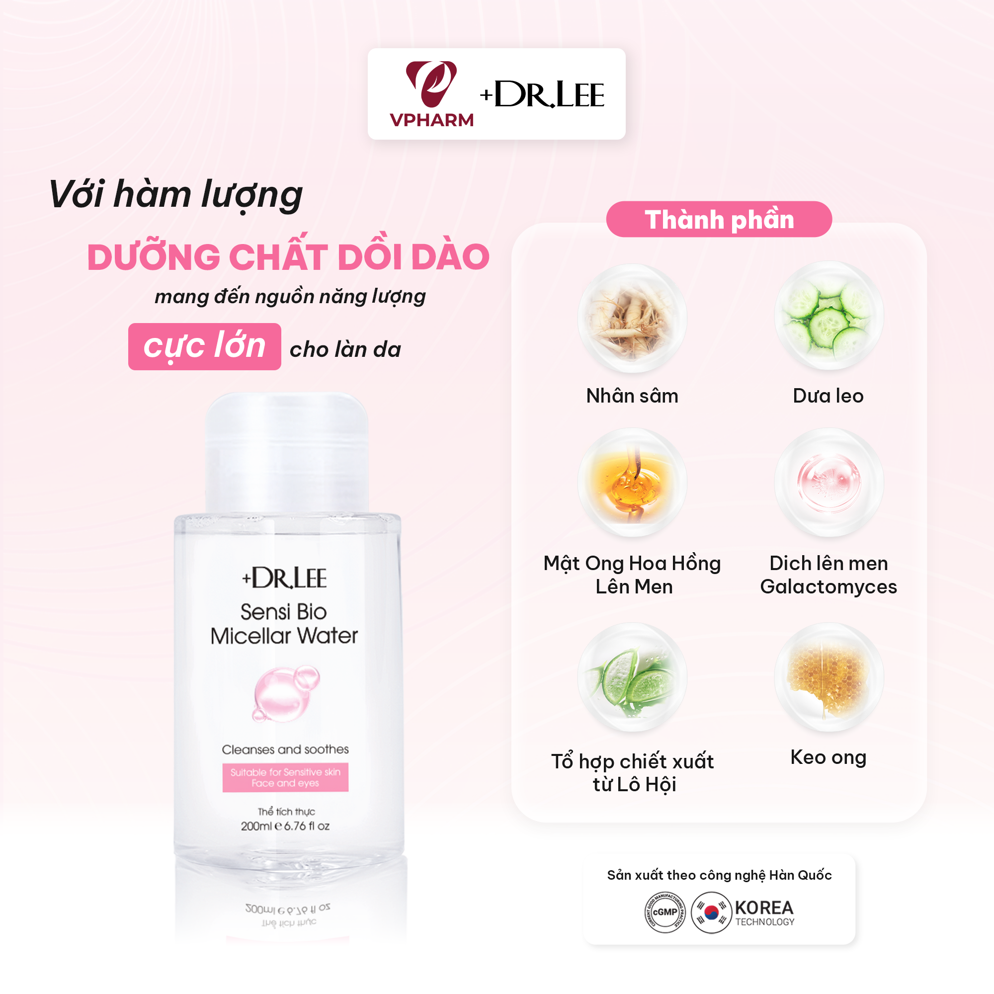 Nước tẩy trang dưỡng ẩm +Dr.lee Sensio Bio Micellar Water 200ml.