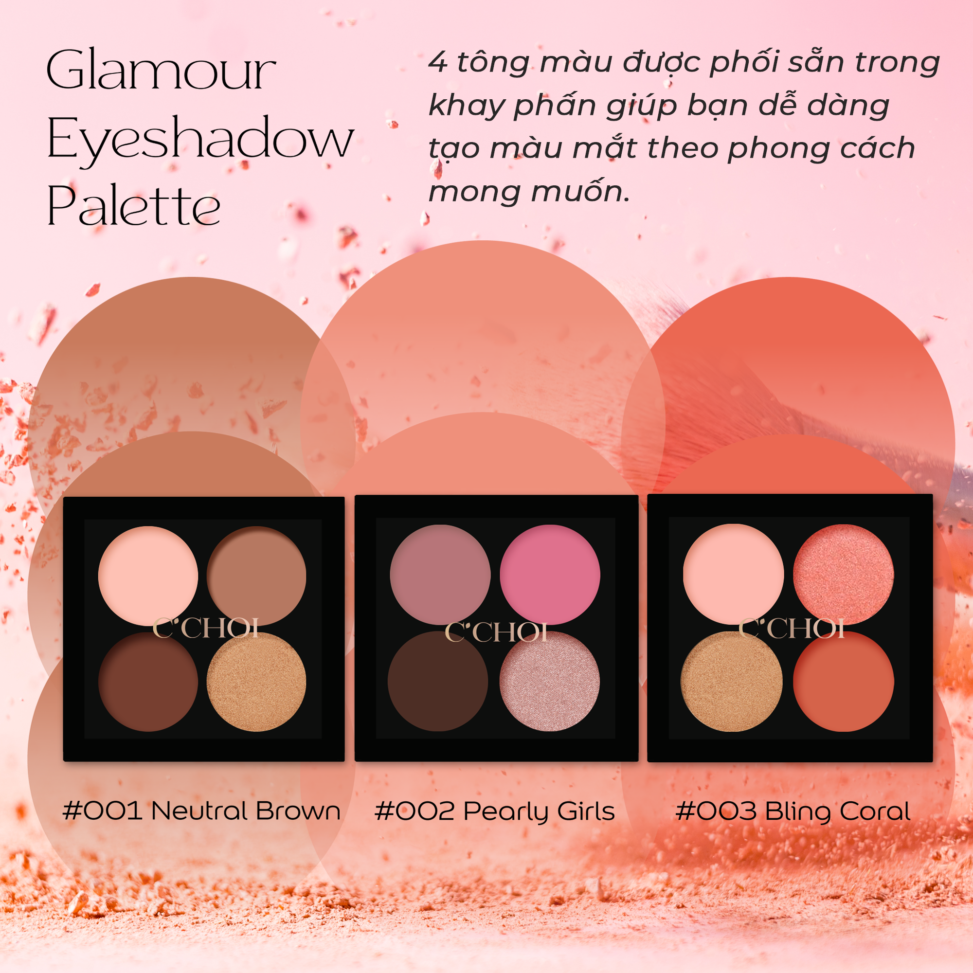 • 🌸 Phấn Mắt Trang Điểm Glamour Eyeshadow Palette – C’ChoiBảng phấn mắt Glamour Eyeshadow Palette gồm 4 ô màu (lì và nhũ) được phối sẵn theo từng tông, giúp bạn dễ dàng tạo phong cách trang điểm mắt đa dạng và tự tin tỏa sáng.