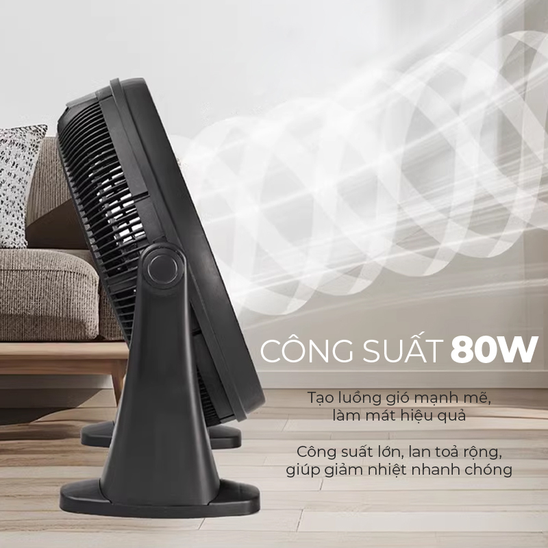- CÔNG SUẤT 80W– Tạo luồng gió mạnh mẽ, làm mát hiệu quả: Công suất lớn giúp quạt tạo luồng gió mạnh, lan tỏa rộng, giảm nhiệt nhanh chóng, phù hợp với không gian rộng– Tăng cường lưu thông không khí: Giúp không gian thông thoáng, không khí trong phòng bớt ngột ngạt, đặc biệt trong không gian kín.