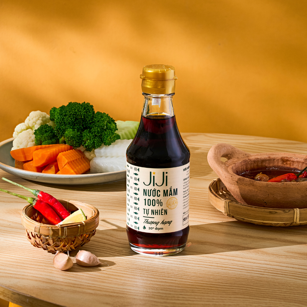 - Nước mắm JiJi 100% tự nhiên Thượng hạng với độ đạm 30 phù hợp với người yêu thích nước mắm truyền thống, đậm đà và tự nhiên.