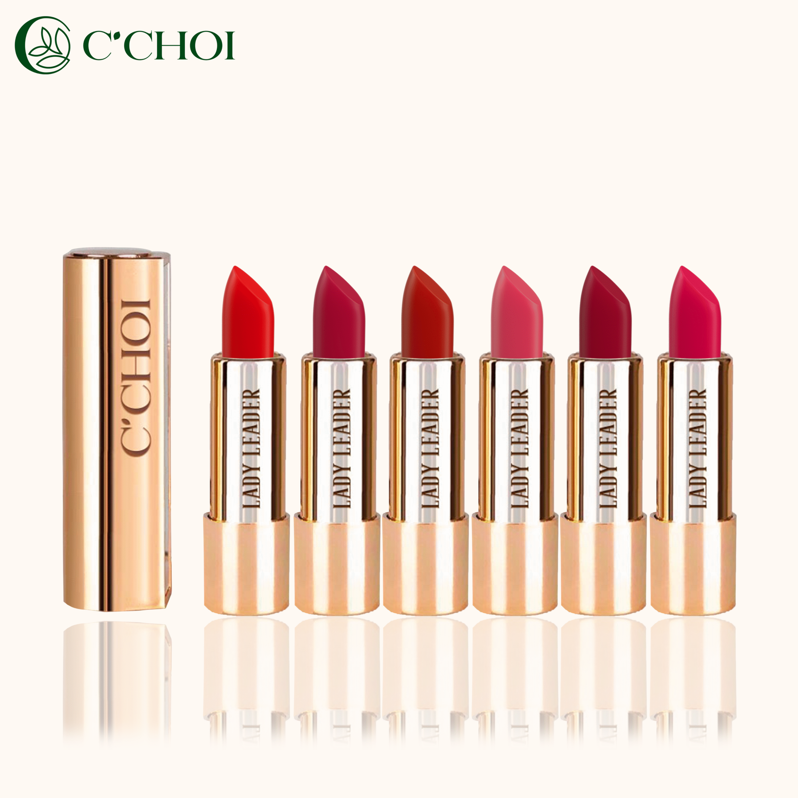 • Son sáp Lady Leader gồm 9 gam màu nắm bắt xu hướng và được yêu thích nhất hiện nayL01 – Start Up : Đỏ TươiL07 – Red & Rex: Đỏ CamL08 – I'm a diva: Đỏ Ruby L09 – Syrup in Pub: Đỏ Lựu L10 – Mon Sunshine: Cam TươiL11 – Glamour Moon: Cam ĐấtL12 – Flamingo Pink: Hồng FlamingoL14 – Peachy Lady: Hồng ĐàoL15 – Go on: Hồng Đất ( Phiên bản màu 2024)Thiết kế từng thỏi son đẹp như một món trang sức của phụ nữ, có kèm gương soi tiện dụng.