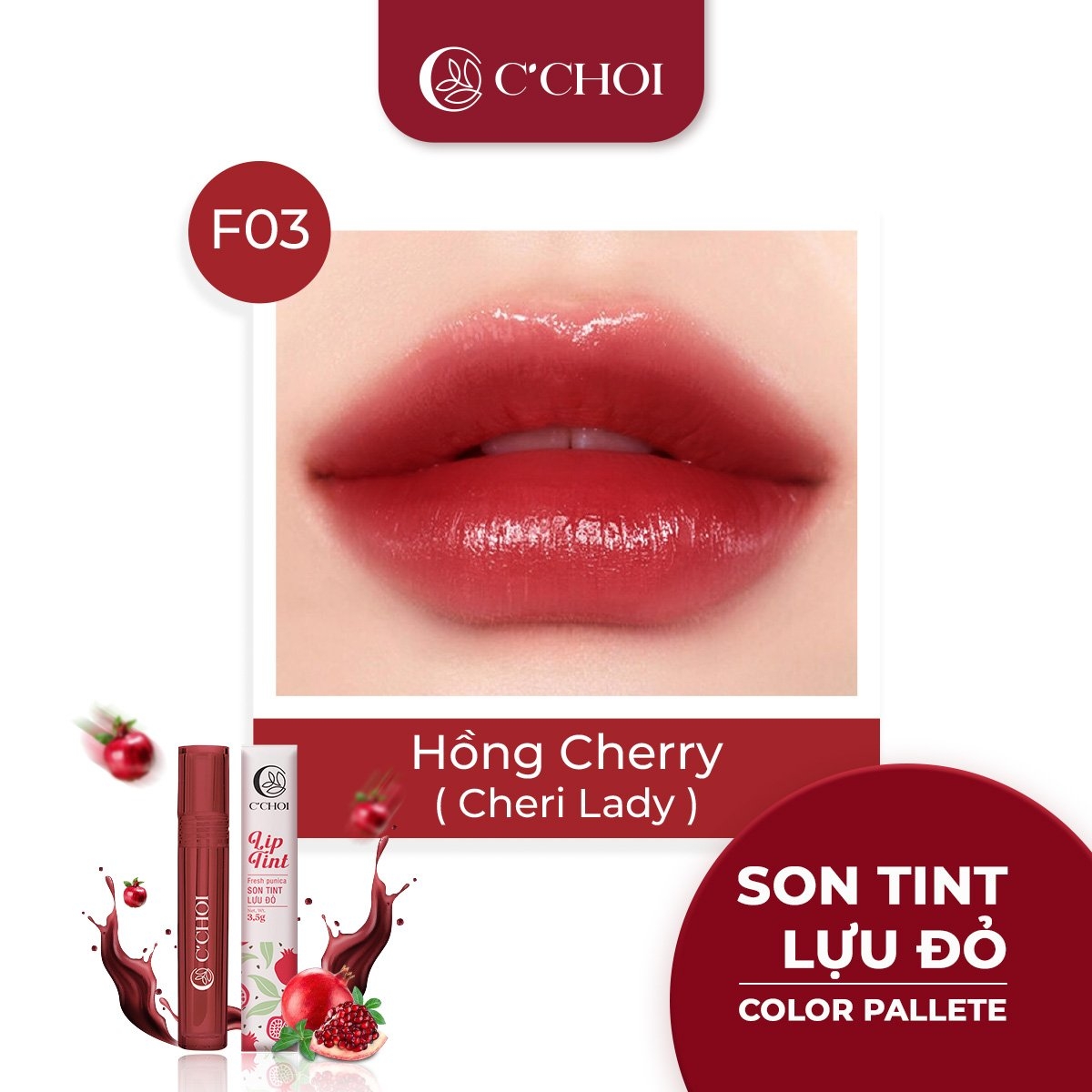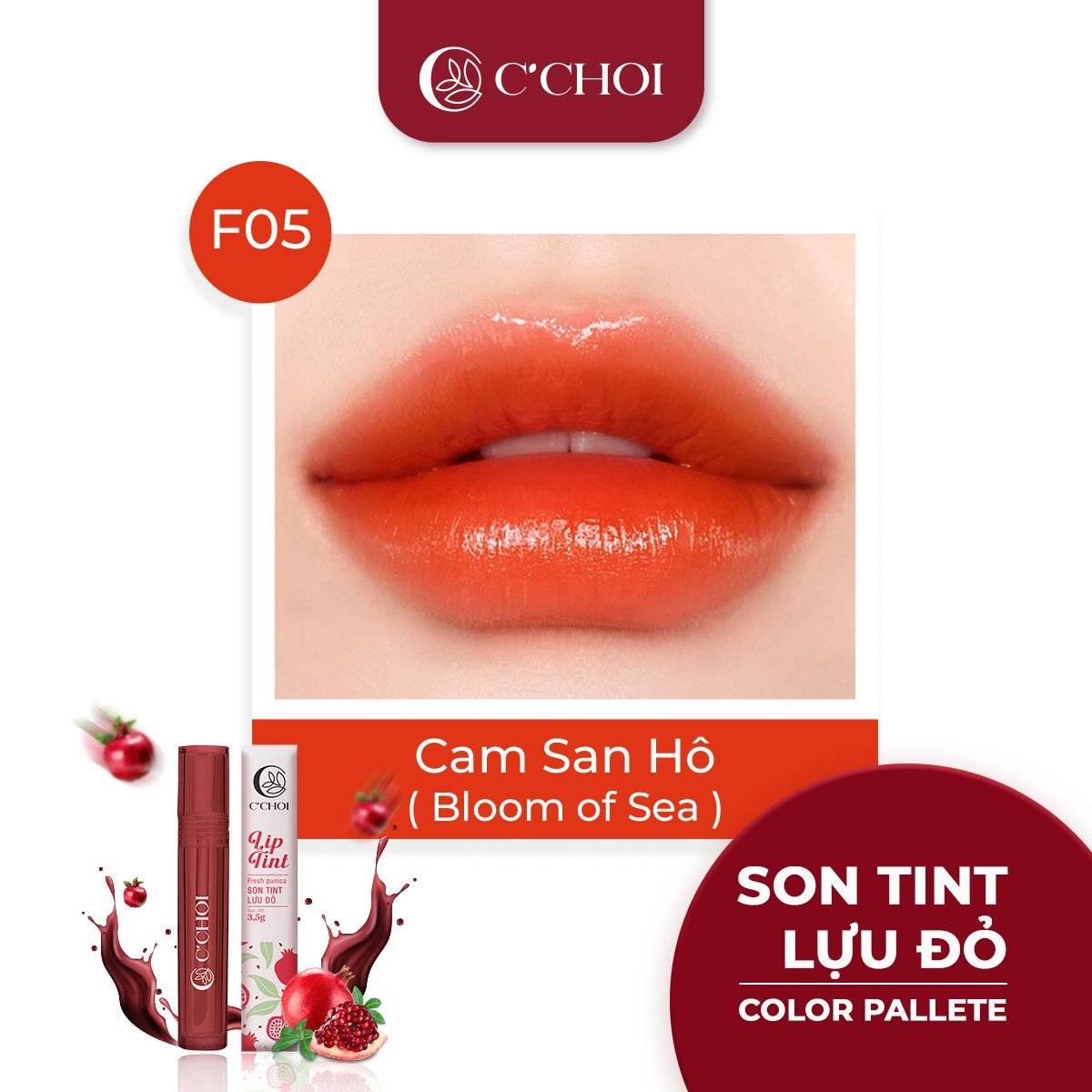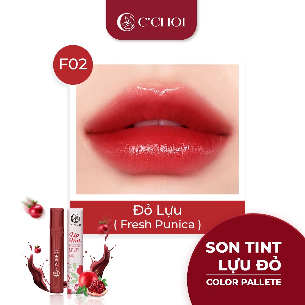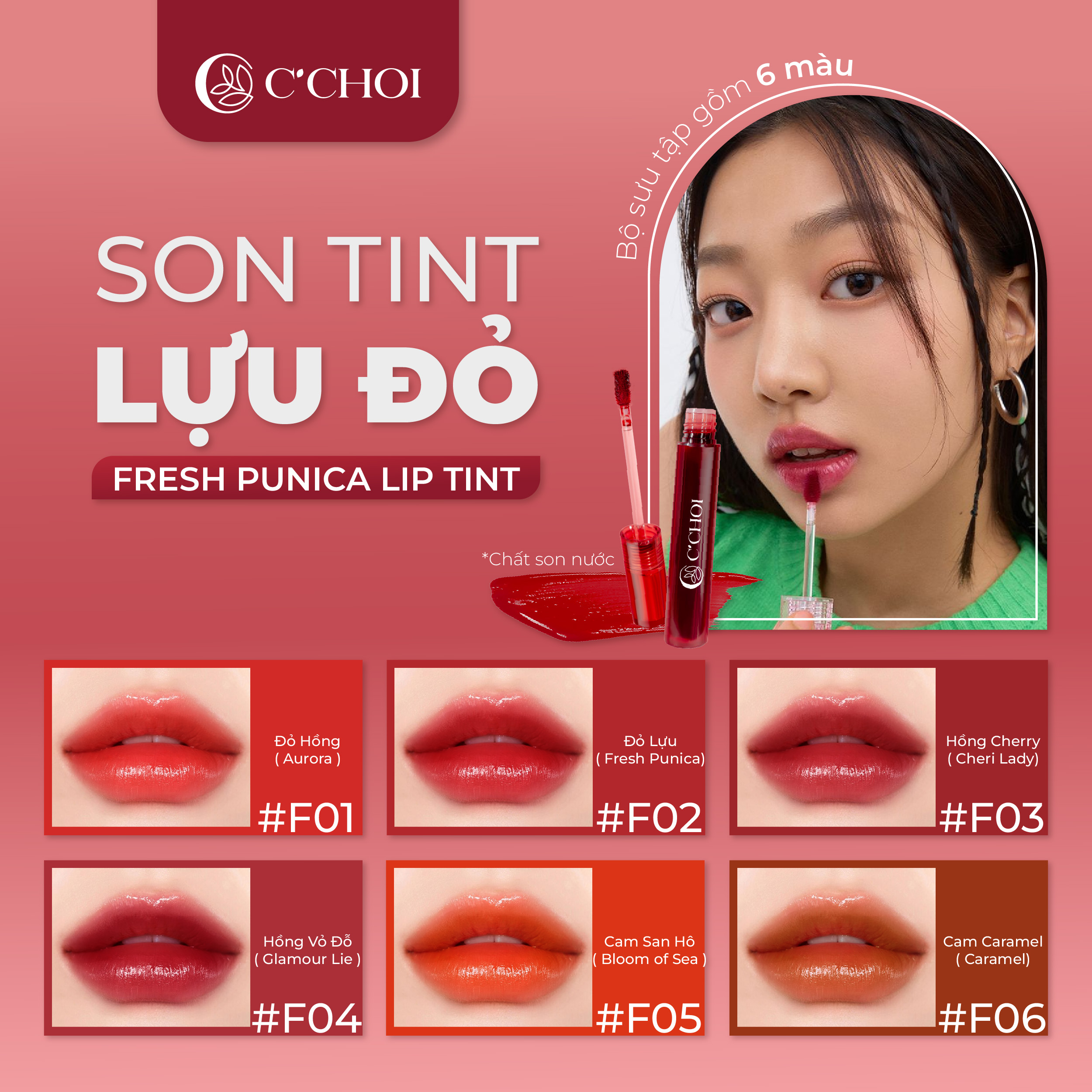 • Son Tint Lựu Đỏ - Fresh Punica Lip TintMàu sắc: 6 sắc màu thời thượng:F01 - Đỏ Hồng - AuroraF02 - Đỏ Lựu - Fresh PunicaF03 - Hồng Cherry - Cheri LadyF04 - Hồng Vỏ Đỗ - Glamour LieF05 - Cam San Hô - Bloom Of SeaF06 - Cam Caramel - CaramelThương hiệu: C’ChoiXuất xứ: Việt NamThành phần:Aqua; Hydrogenated Polyisobutene; Bis-Diglyceryl Polyacyladipate-2; Diisostearyl Malate; Octyldodecanol; Propanediol; Polyglyceryl-3 Beeswax; Candelilla Cera; Hydroxyethyl Acrylate/Sodium Acryloyldimethyl Taurate Copolymer; Punica Granatum Fruit Extract; Glycerin; Tocopheryl Acetate; Isohexadecane; Sorbitan Isostearate; Ethylhexylglycerin; Polysorbate 60; Fragrance; Phenoxyethanol; +/- CI 14720; +/- CI 16255; +/- CI 19140; +/- CI 45430.