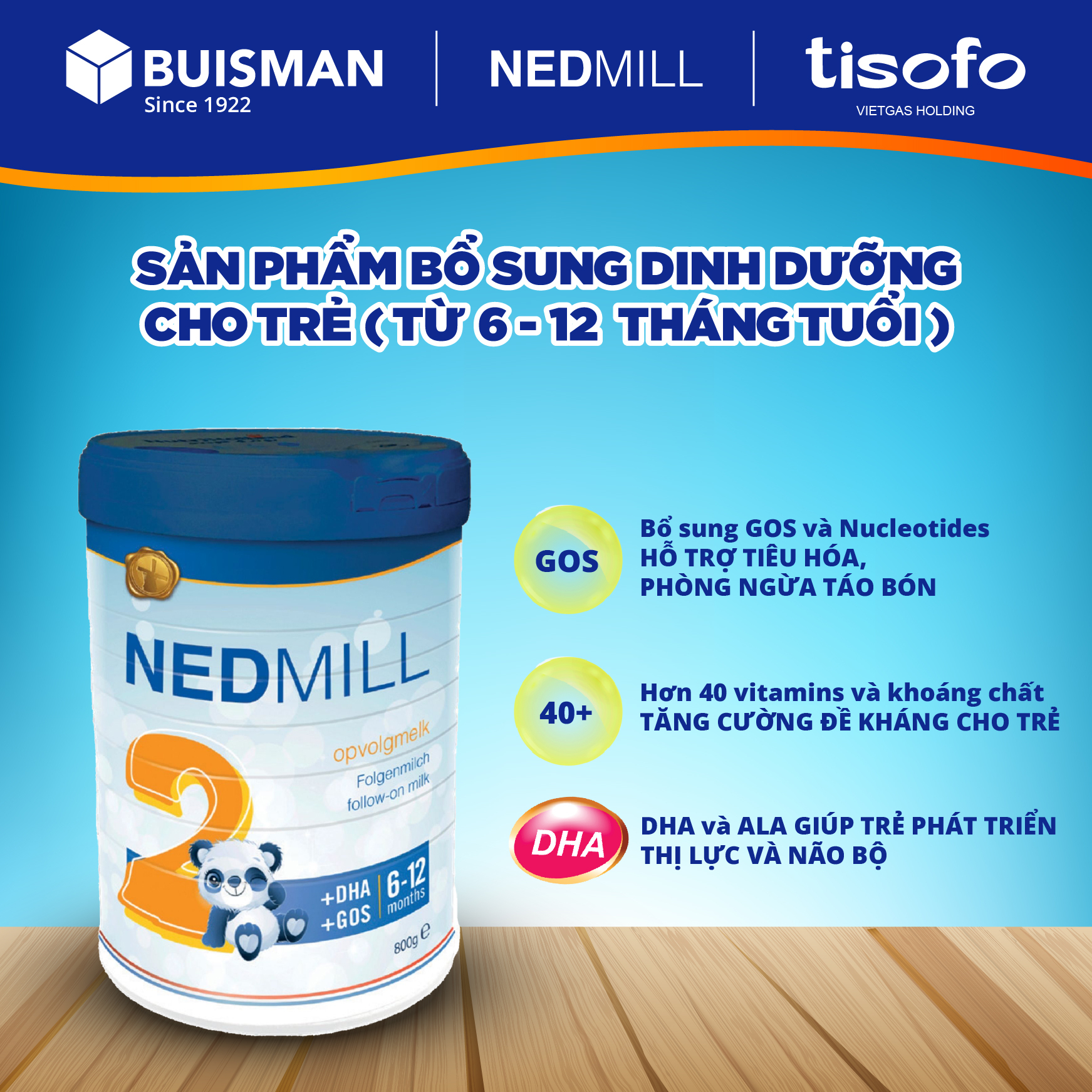 1. Tên sản phẩm: Sản phẩm dinh dưỡng công thức dành cho trẻ từ 6-12 tháng tuổi Nedmill Stage 2