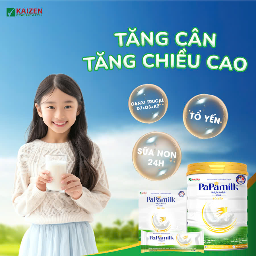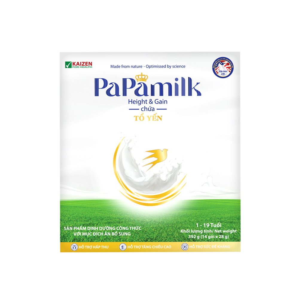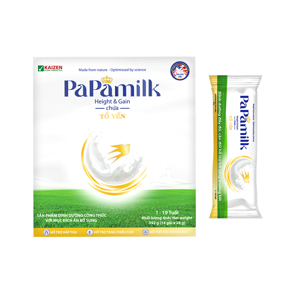 Sữa non tổ yến Papamilk Height & Gain giúp tăng cân tăng chiều cao cho Trẻ từ 1-19 tuổi (14gói x 28g)