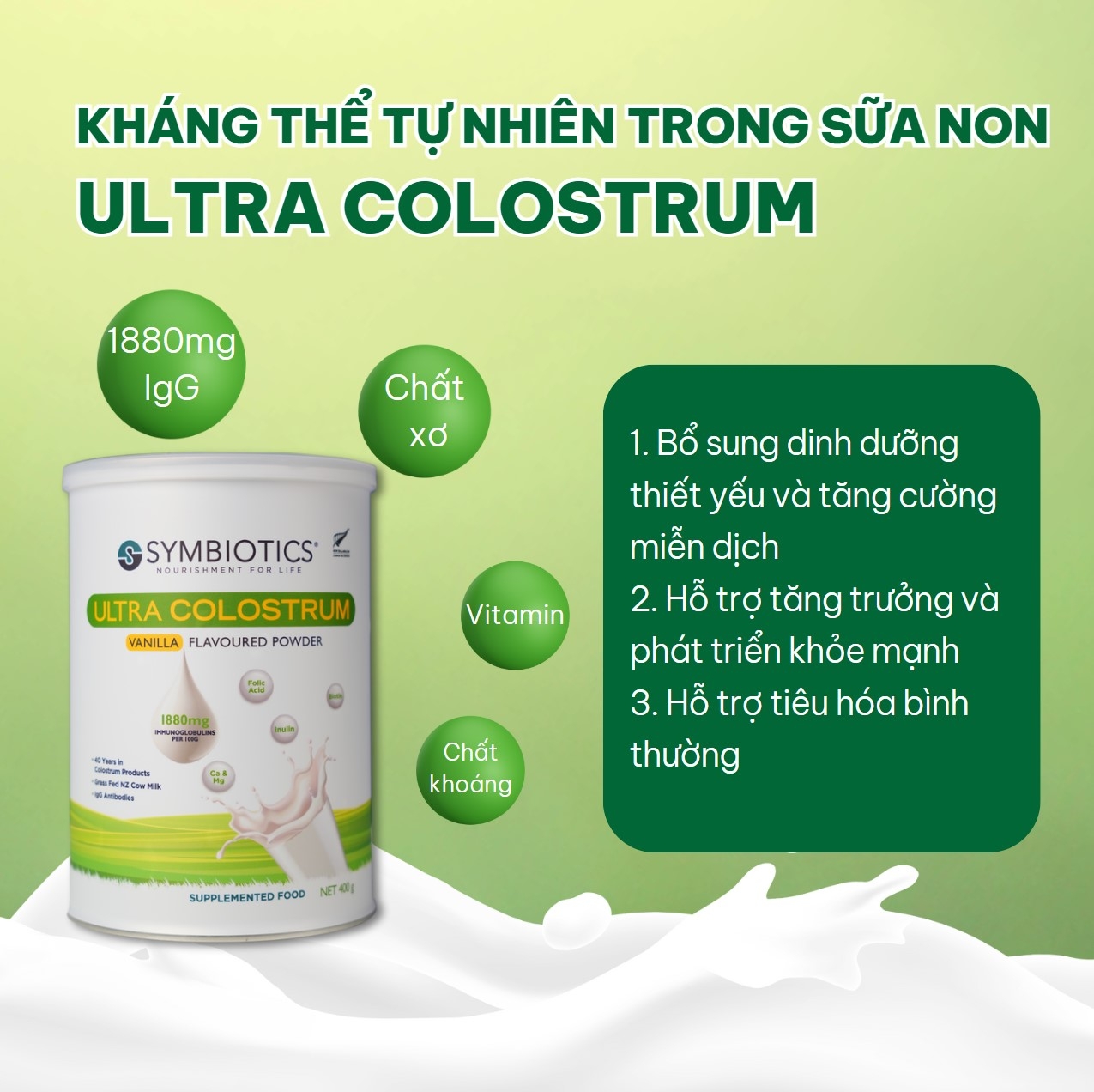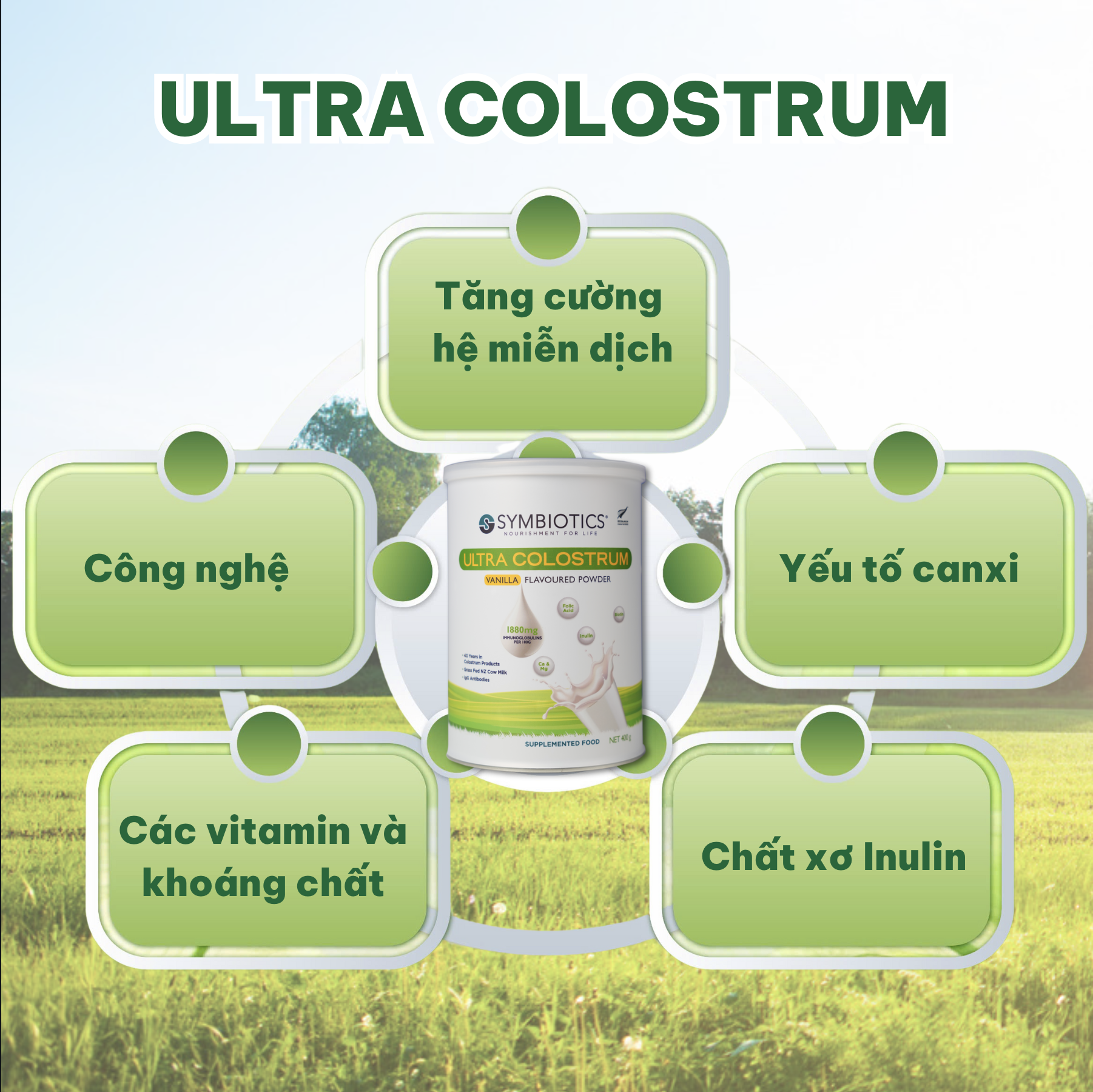 - Ultra Colostrum chứa đến 60 loại chất dinh dưỡng quan trọng cho sự phát triển và tăng cường sức khỏe toàn diện.
