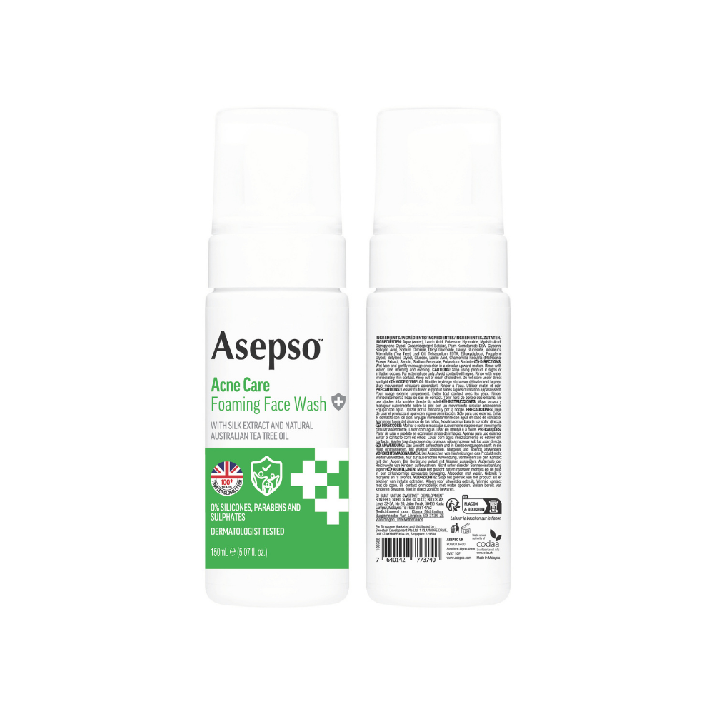 Sữa rửa mặt dạng bọt ASEPSO hỗ trợ giảm mụn dành cho da mụn Chiết Xuất Tơ Tằm và Tinh Dầu Tràm Trà Tự Nhiên Úc 150 ml