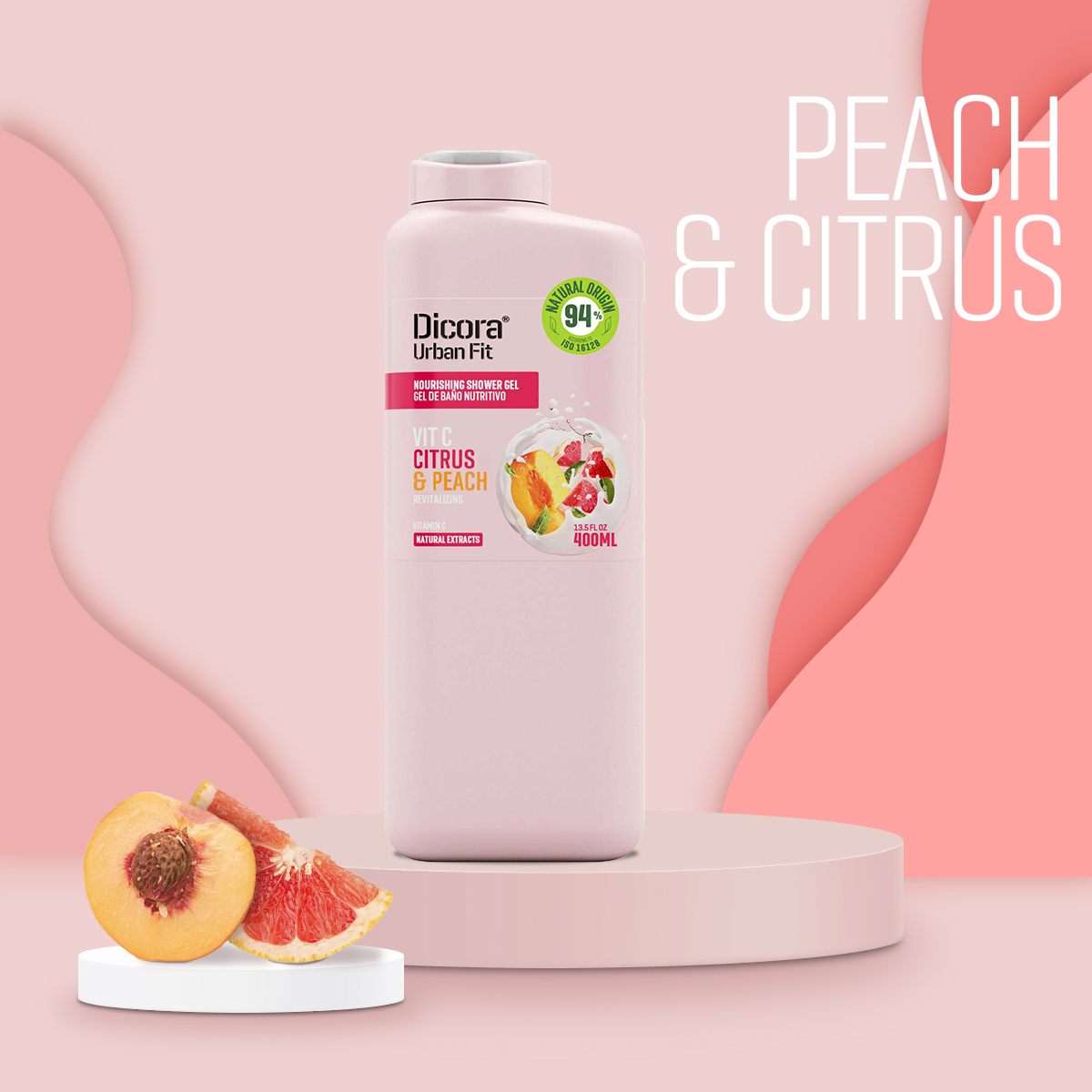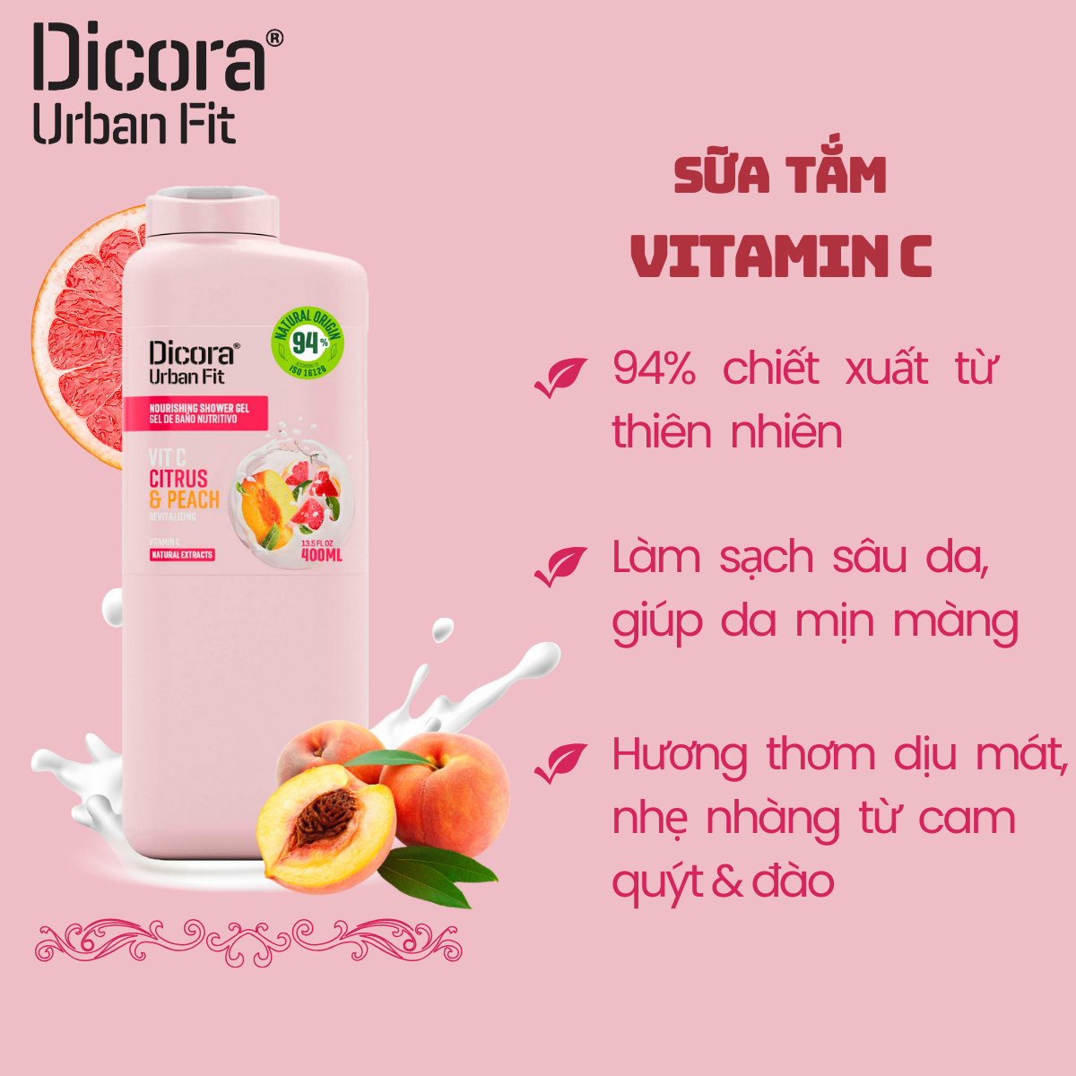 - Tên sản phẩm: Dicora Urban Fit Dicora Uf Nourishing Shower Gel Vit C Citrus & Peach/ Sữa Tắm Vitamin C Hương Cam Quýt Và Đào