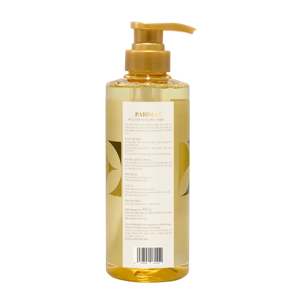 Sữa tắm Nước Hoa Parisian giúp làm sạch và dưỡng ẩm da, mang lại làn da trông tươi sáng và mịn màng, cùng hương nước hoa quyến rũ và thanh lịch.