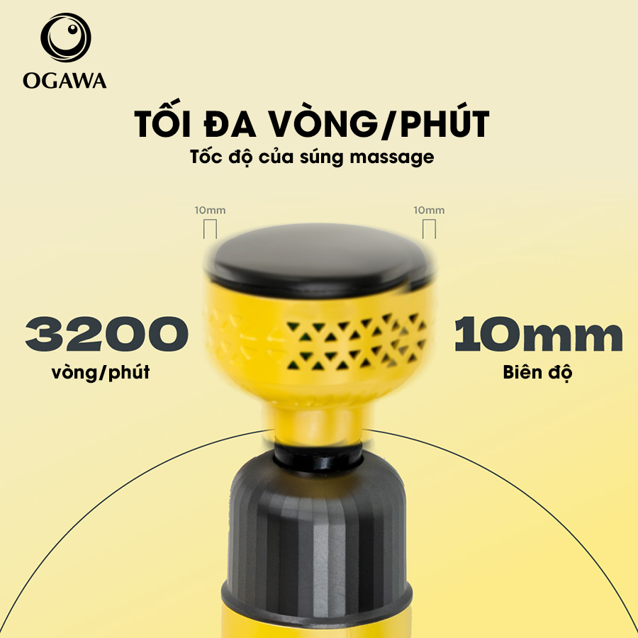- Tên sản phẩm: Ogawa TurboRevive Hot & Cold Portable Massage Gun, Sunshine Yellow (OG-1102L) / Máy massage cầm tay nóng & lạnh TurboRevive, hiệu Ogawa, màu vàng (OG-1102L)2.