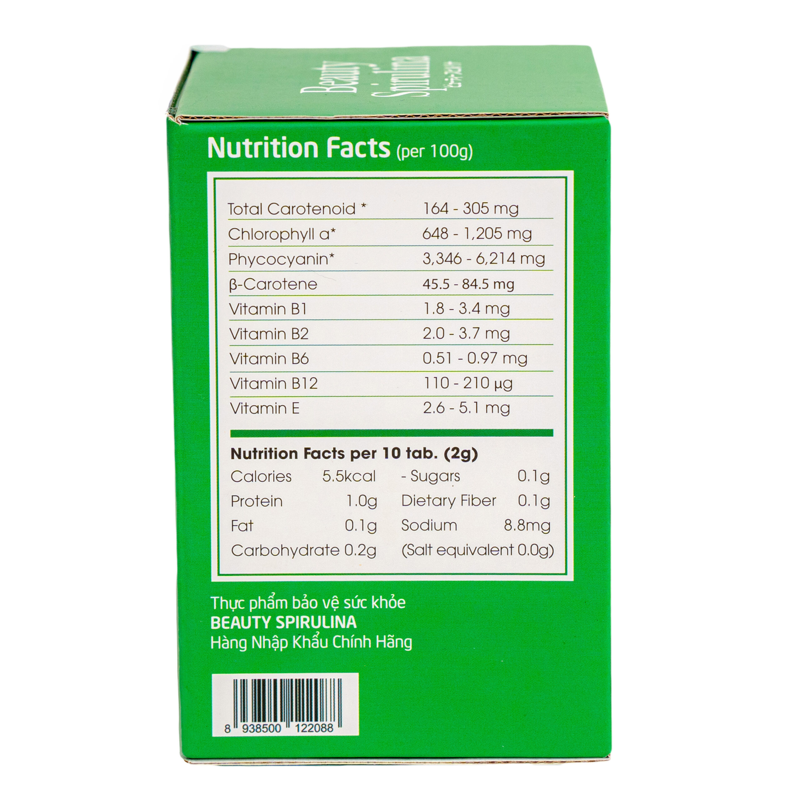 - Thành phần: Trong 1 viên chứa:Bột tảo Spirulina 154.