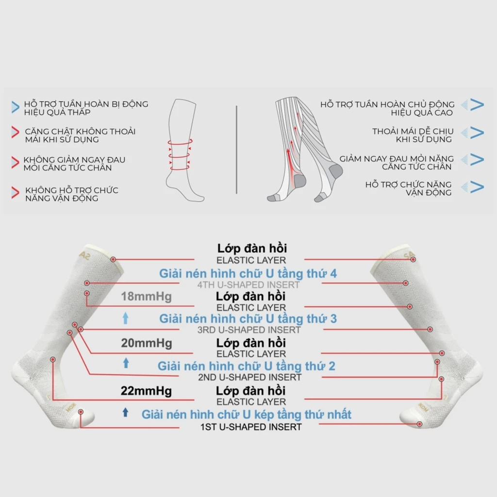 - Được thiết kế mô phỏng giải phẫu và sinh trắc hệ cơ vùng cẳng chân với vector lực ép đa tầng theo chiều dọc, tăng cường hiệu quả trương lực của khối cơ vùng cẳng chân giúp thúc đẩy tuần hoàn tĩnh mạch mà không gây khó chịu, căng thẳng cho người sử dụng.