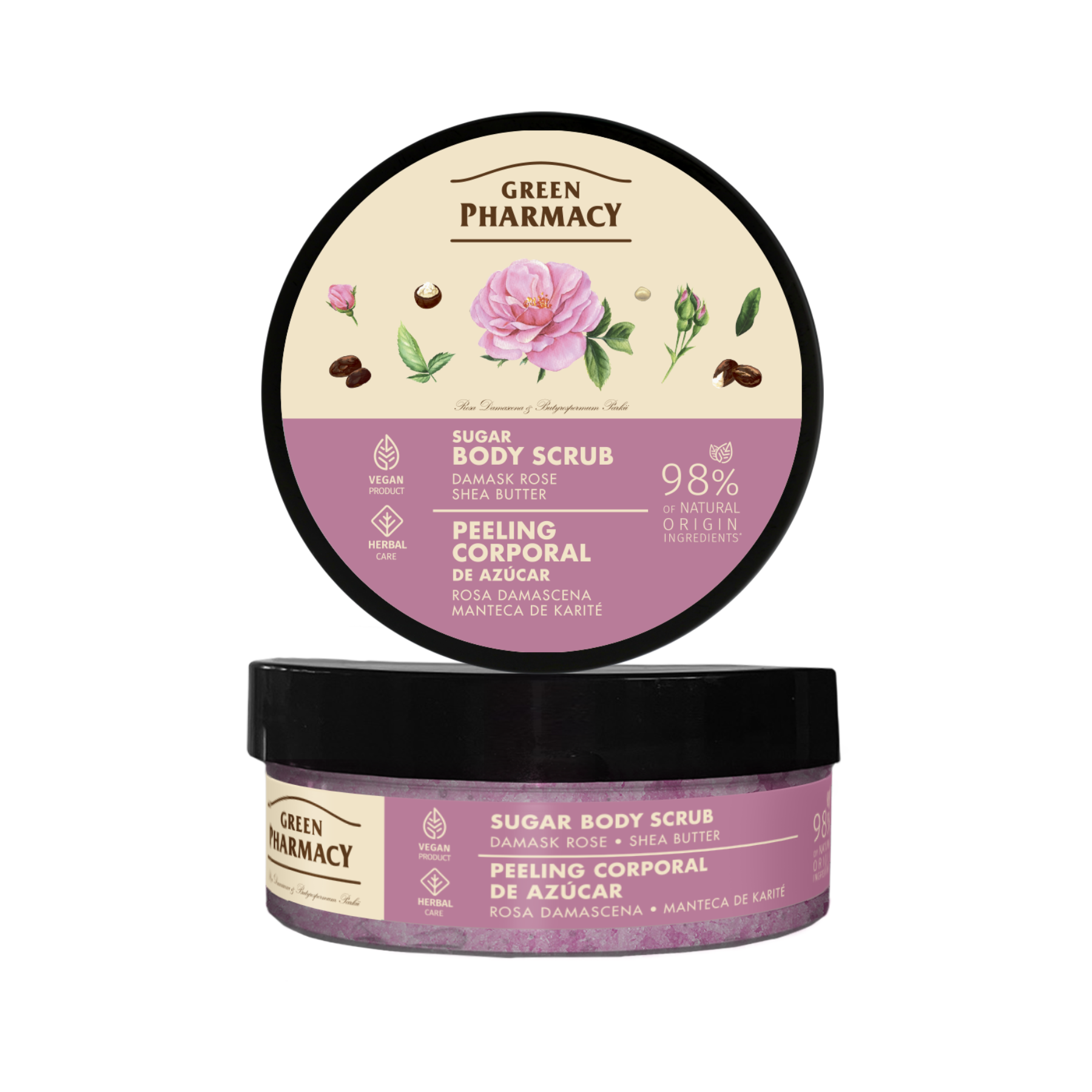Tẩy da chết toàn thân Green Pharmacy Hoa hồng Damask và Bơ hạt mỡ 200ml