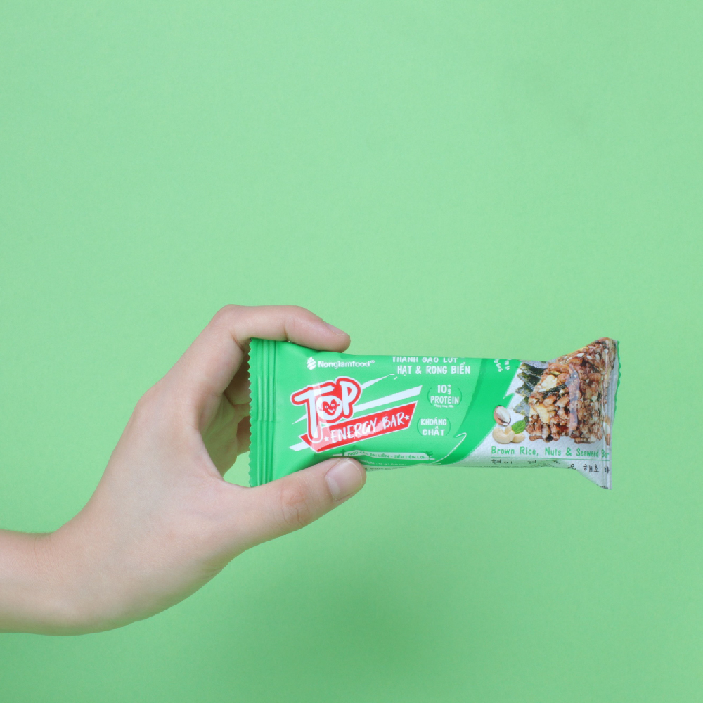 2. Thành phần vị rong biển: Gạo lứt sấy (35 %), hạt đậu phộng (10 %), hạt điều (8 %), hạnh nhân (7 %), rong biển (7 %), hạt macca (5 %), hạt bí xanh (5 %), hạt mè (1,5 %)
