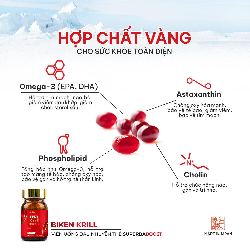 Thực phẩm bảo vệ sức khỏe BIKEN KRILL (Bổ sung Omega-3 nhuyễn thể)