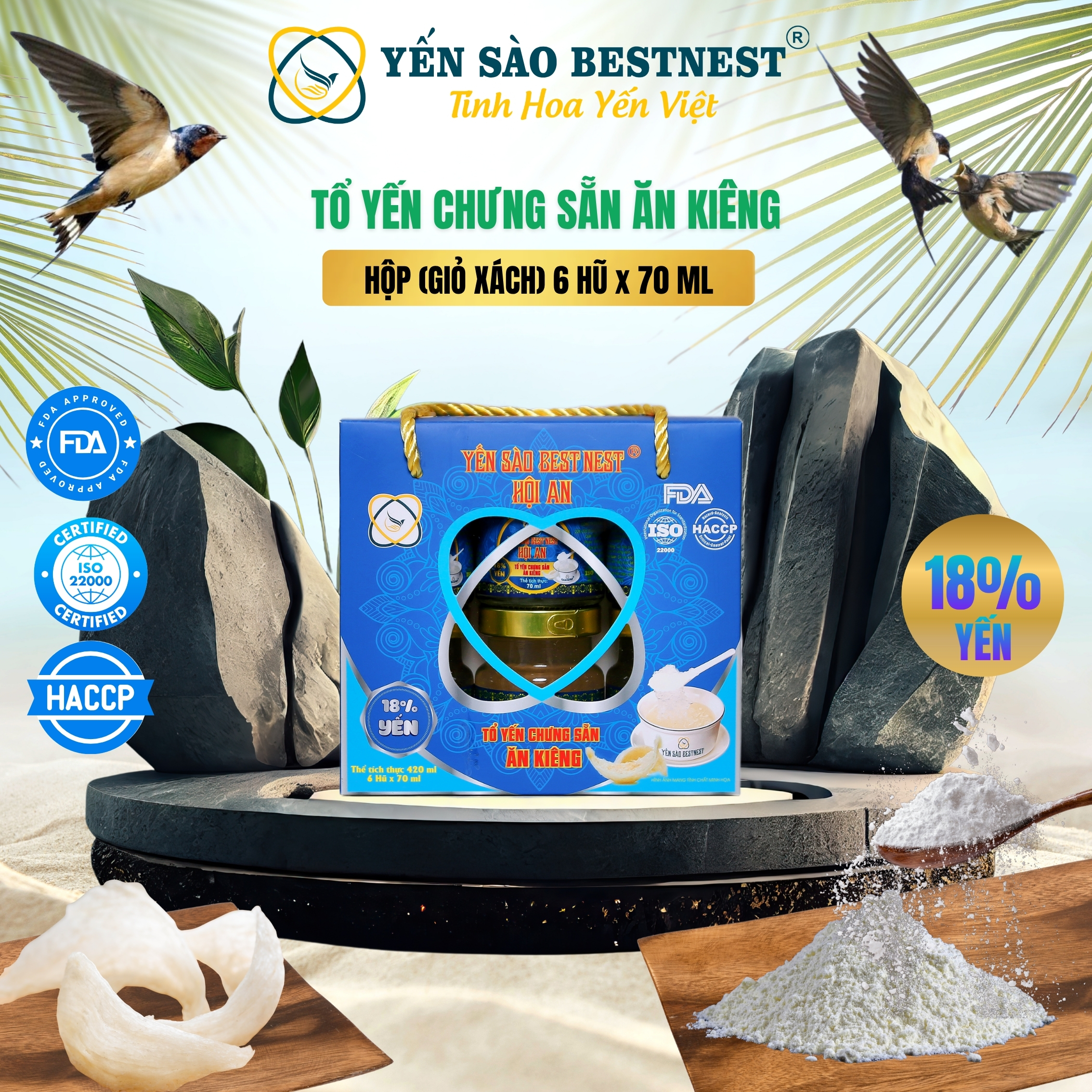Thùng 10 Hộp 6 hũ Tổ yến chưng sẵn BESTNEST HỘI AN 18% Ăn Kiêng
