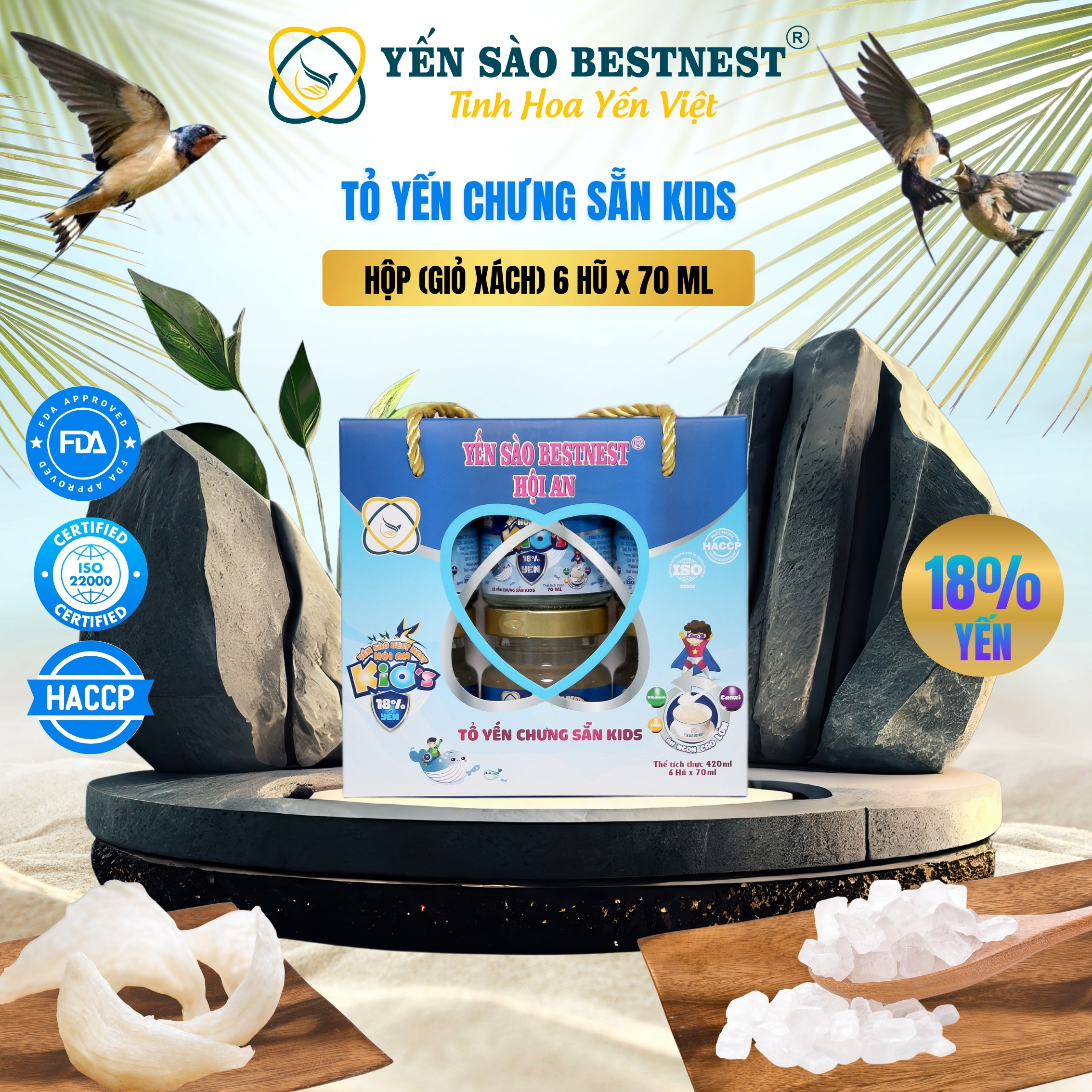 Thùng 10 Hộp 6 hũ Tổ yến chưng sẵn BESTNEST HỘI AN 18% Kid