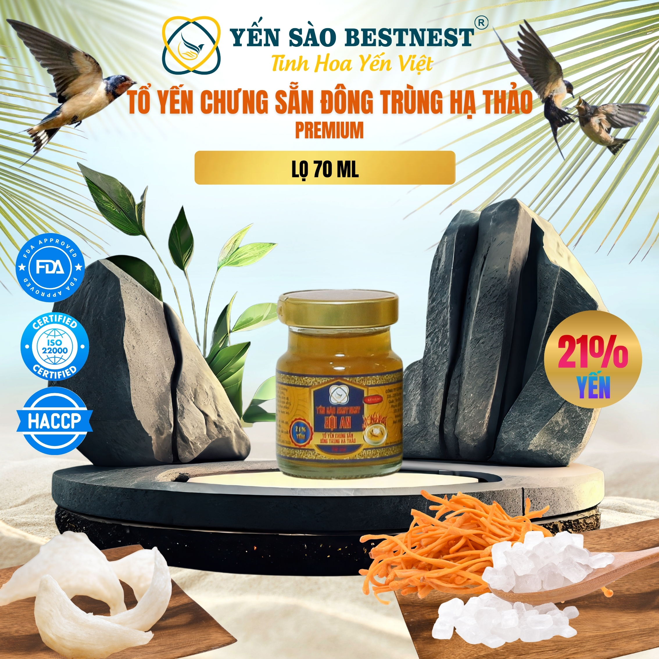 - Tổ yến chưng sẵn BESTNEST Hội An 21% là dòng sản phẩm được thiết kế đặc biệt chuyên sâu cho từng đối tượngBên cạnh đó, trong tổ yến chứa đến 18 axit amin và 31 nguyên tố vi lượng, đóng vai trò quan trọng trong việc tái tạo năng lượng và duy trì sức khoẻ tổng thể, nâng cao sức đề kháng và tăng cường hệ miễn dịch.