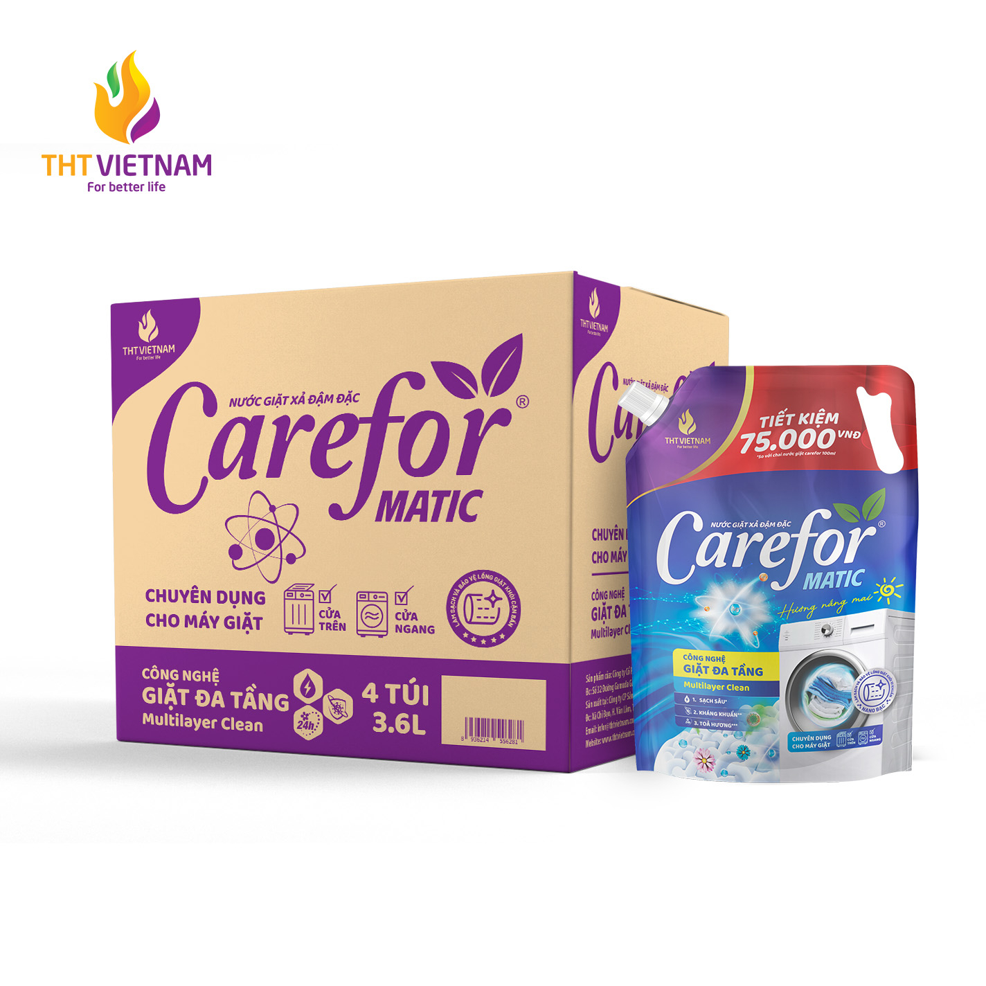 Thùng 4 túi Nước giặt xả đậm đặc Carefor Matic 3600ml hương nắng mai
