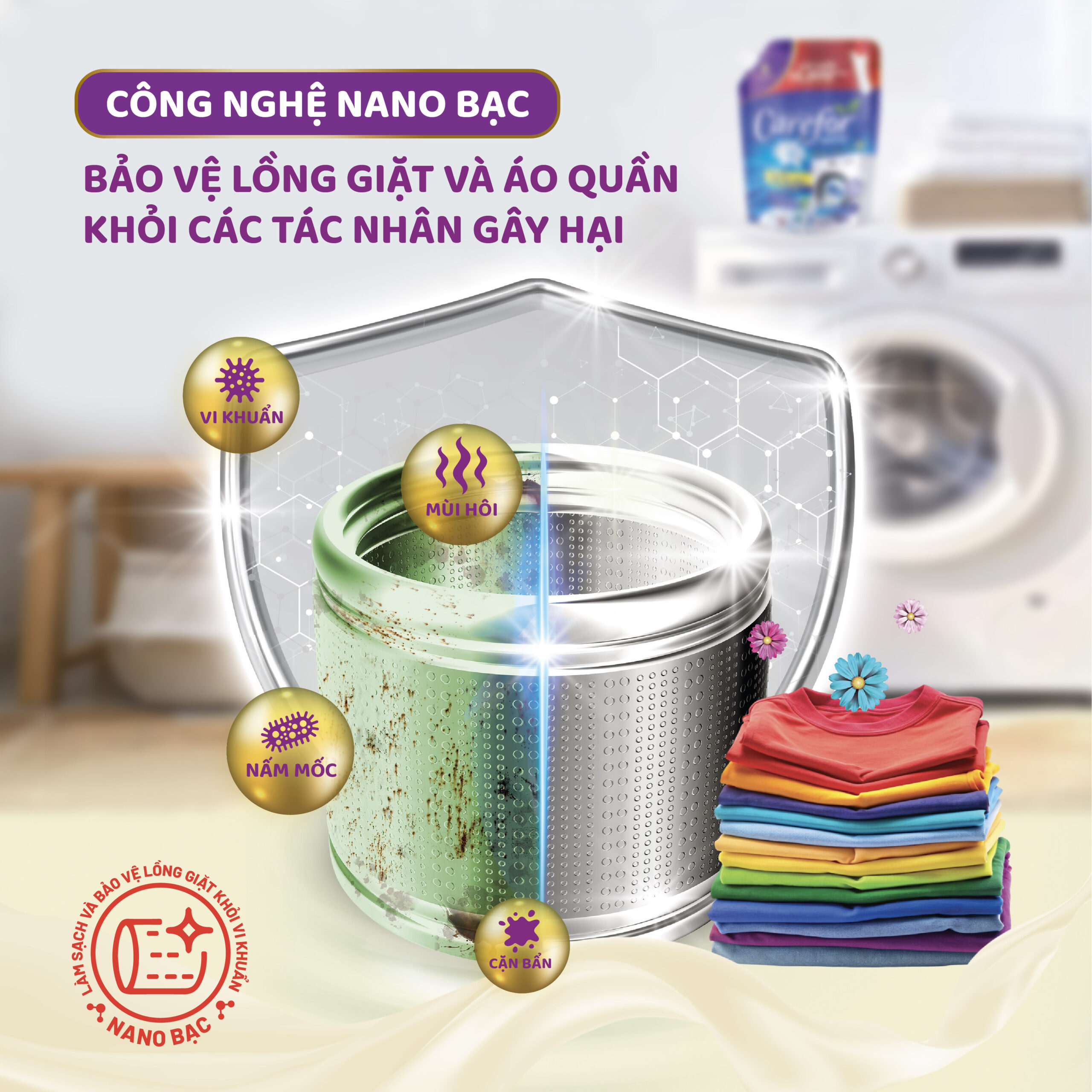 Vượt trội hơn nhờ công nghệ Nano bạc và khả năng phá bọt (anti foam) ngay trong lồng giặt, không đóng cặn, giúp bảo vệ lồng giặt khỏi các cặn bẩn và các vi khuẩn gây nấm mốc.