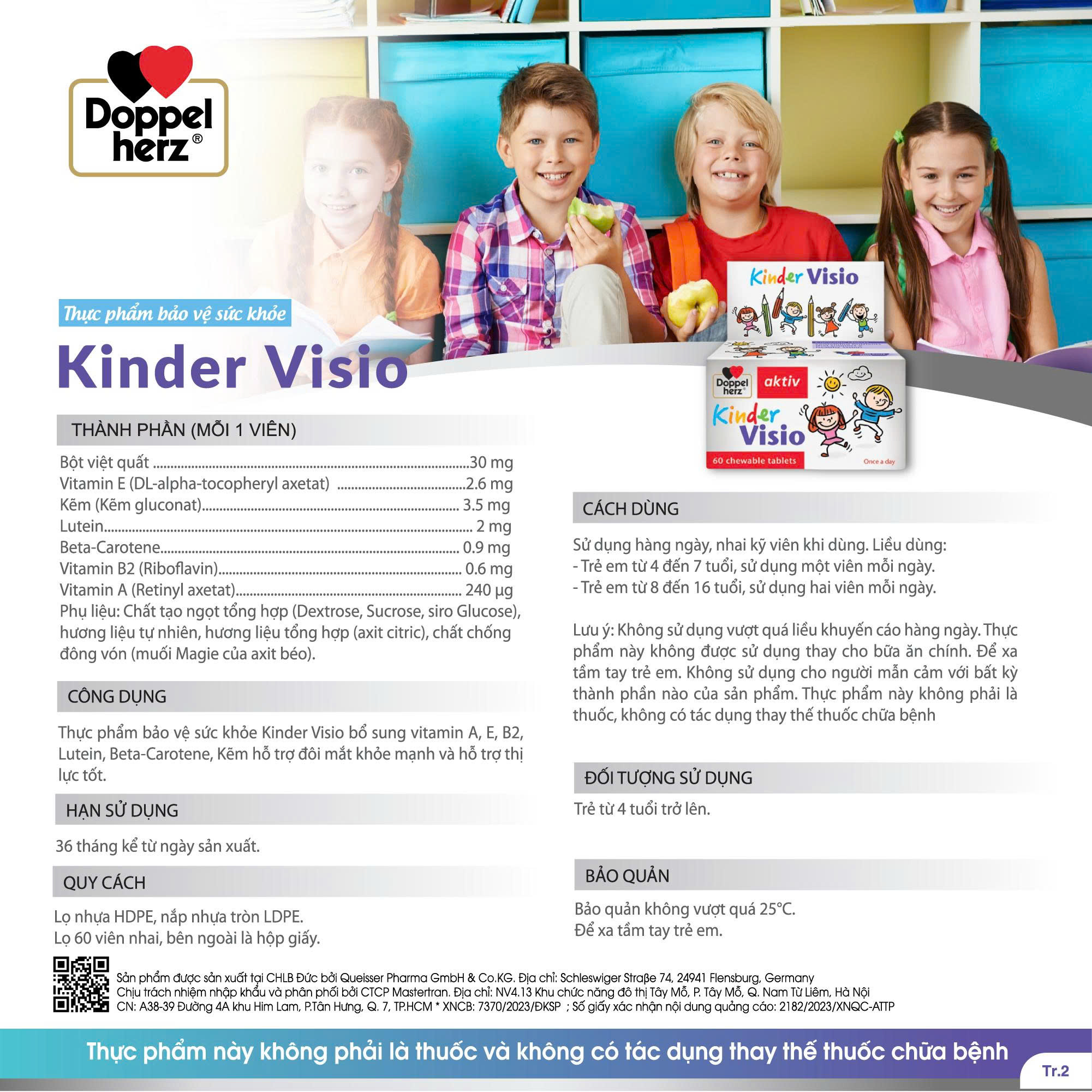 Thực phẩm bảo vệ sức khỏe Kinder Visio bổ sung vitamin A, E, B2, Lutein, Beta-Carotene, Kẽm hỗ trợ đôi mắt khỏe mạnh và hỗ trợ thị lực tốt