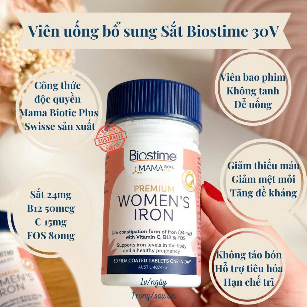 Viên uống bổ sung sắt hữu cơ Biostime Úc 30v