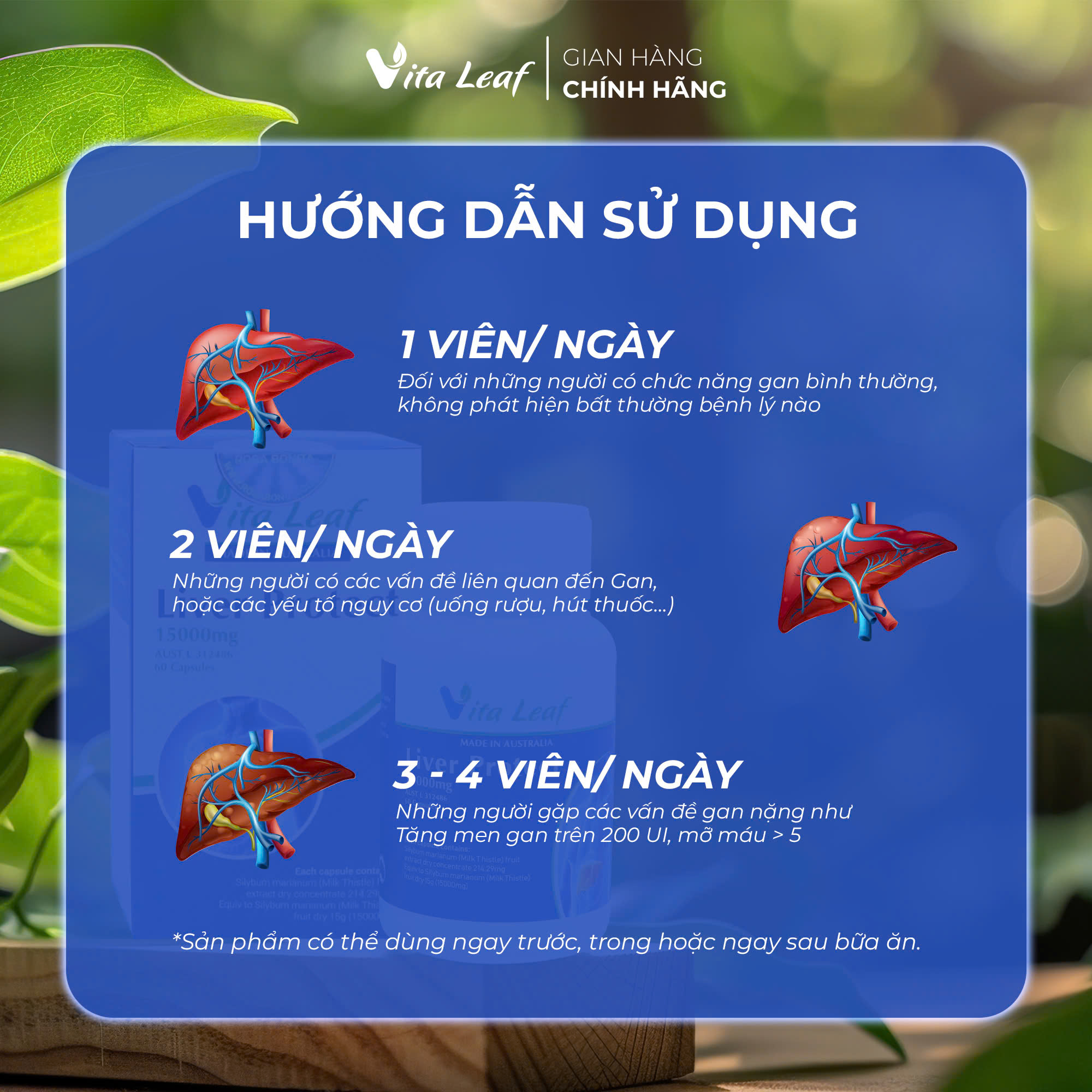 - Tên sản phẩm: Thực phẩm bảo vệ sức khỏe Liver Protect 15000mgThương hiệu: Vita LeafXuất xứ: Australia (Úc)Thành phần: Chiết xuất Silybum marianum (kế sữa) cô đặc: 214.